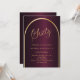 An elegant 60th birthday invitation. A burgundy background with a golden arch on the front.