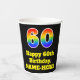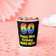 This fun and exciting birthday themed paper cup design features a large number “60” having a rainbow spectrum gradient inspired pattern. It also features the message “Happy 60th Birthday,”, and an editable name. The background is coloured black. Colourful, vibrant paper cups like this might be fun to have at a birthday celebration/party being held to honour somebody’s sixtieth birthday. [~Z0000537]