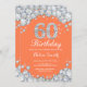 60th Birthday Invitation. Coral and Silver Rhinestone Diamond. Elegant Birthday Bash invite. Adult Birthday. Women Birthday. Men Birthday. For further customisation, please click the "Customise it" button and use our design tool to modify this template.