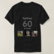 For a 60th birthday as a gift or for the party. A collage of 3 of your photos of himself friends, family, interest or pets. Personalise and add his name, age 60 and a date. Date of birth or the date of the birthday party. Grey and white coloured text.