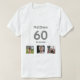 For a 60th birthday as a gift or for the party. A collage of 3 of your photos of himself friends, family, interest or pets. Personalise and add his name, age 60 and a date. Date of birth or the date of the birthday party. Grey and black coloured text.