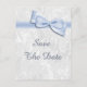 Womens' elegant 60th Birthday Party save the date postcards. Woman's sixtieth birthday party save the date cards. Beautiful white damask pattern background of flourishes and swirls with a pretty, stylish romantic blue bow and ribbon image. These glamourous, chic, classy save the date postcards are beautifully sophisticated and are decorated / printed on both sides. PLEASE NOTE: All products on Zazzle have flat printed images. Bow and ribbon images purchased from digital-designs-by-elena. If you need any assistance customising your product please contact me through my store and I will be happy to help. I also have other matching products in my store.
