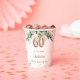 For an elegant 60th birthday party. A white background. On the front and the back: Personalise and add a name and a date. Decorated with eucalyptus greenery and faux glitter dust. Nr 60 is written with a balloon style font.