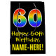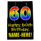 This colourful, exciting, and fun birthday themed giftbag design features a large number "60" with a rainbow spectrum gradient inspired pattern, along with the message "Happy 60th Birthday,", and an editable recipient name. The background is coloured black. A birthday themed giftbag like this might be a fun way to wrap a gift or present being given to celebrate somebody’s sixtieth birthday. [~Z0000512]