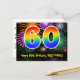60th Birthday – Fun Fireworks Pattern + Rainbow 60 Postcard