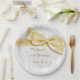 60th Birthday Gold Damask and Faux Bow Paper Plate
