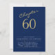 60th Birthday Gold Modern Script Blue Invitation