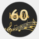 60th birthday gold music notes on elegant black classic round sticker