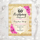 60th Birthday Gold Stripes Pink Roses Invitation