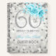 60th Birthday Guestbook Silver Glam Lights Teal Notebook