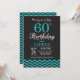 60th Birthday Invitation with Black and Teal Chevron. Chalkboard. Adult Birthday. Man or Women Bday Invite. For further customisation, please click the "Customise it" button and use our design tool to modify this template.