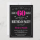 60th Birthday Invitation Hot Pink Black Chalkboard