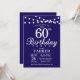 60th Birthday Invitation with String Lights. Navy Blue Background. 13th 15th 16th 18th 20th 21st 30th 40th 50th 60th 70th 80th 90th 100th, Any age. For further customisation, please click the "Customise it" button and use our design tool to modify this template.