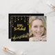 Black background with golden music notes and party streamers. With the text: 60th Birthday! on front. Template for your photo. A birthday party invitation for women.