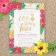 Pink & gold 60th birthday luau invitations with fun, pretty tropical flowers and pineapples, with gold accents. Perfect for a luau themed sixtieth birthday bash!