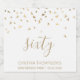 Help her celebrate her 60th birthday in style with this simple but elegant design, featuring faux gold foil triangular confetti sifting down on the word "sixty" in gold handwriting font on a white background. Personalise it with the name of the honoree in gold sans serif font, along with the occasion and date below in smaller gold type.