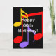 Bright, bold Music Notes of different colours with white text Happy 60th Birthday.