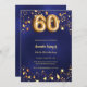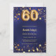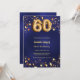 A modern, stylish invitation for a 60th birthday. A navy blue background, decorated with golden stars. The blue colour is uneven. Personalise and add your name and party details.