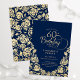Navy gold elegant 60th birthday party invitation. Classy design featuring roses, faux gold foil and typography script font. Trendy invite card perfect for a stylish female bday celebration. Personalise with your own details. Can be customised to any age. Printed Zazzle invitations or instant download digital printable template.