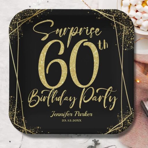 Throw a dazzling celebration with our "60th Birthday Party Elegant Modern Black & Gold Invitation!" Perfect for a glamourous and unforgettable event. Shop now and make the surprise truly sparkle! ✨🎉 Please note: The gold glitter effect is simulated, no real glitter is used