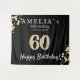 60th Birthday Party Black Golden Backdrop. 60th birthday tapestry for him or her. Use the tapestries as a backdrop for the 60th birthday party. Personalise it with your text.