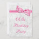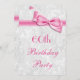 60th Birthday Party Damask and Pink Faux Bow Invitation