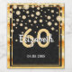 An elegant, glamourous and girly 60th birthday wine or sparkling wine bottle label. Black coloured faux glitter with faux golden diamond sprinkle and a golden frame. Templates for a name, age 60 and a date. Date of birth or the date of the party/anniversary. White and golden coloured letters. The name is written with a hand-lettered style script.