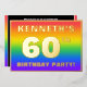 The front of this vibrant and eye-catching sixtieth birthday celebration foil invitation card design features a custom name, a large number “60th”, the message “BIRTHDAY PARTY!”, and a border. The background of the front has an exciting, colourful, rainbow spectrum inspired gradient pattern. The back features personalised details about the event, such as the date, time, place/venue, and any other useful information. Customisable invitations like these might be a fun way to invite guests/attendees to a birthday party being held to celebrate somebody’s 60th birthday. [~Z0000599]