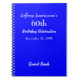 This 60th Birthday Party spiral notebook Guest Book is decorated with a solid royal blue background.  Easy to customise, just CHANGE or delete EXAMPLE NAME and EVENT.  All Rights Reserved © 2014 Alan & Marcia Socolik.