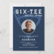 Celebrate in style with this golf-inspired invitation featuring a clever "Six-Tee (and still on par)" pun. The navy blue background highlights a bold golf club and tee design, with a customisable photo of the birthday honoree inside the golf ball. The back showcases a golf club, adding a fun, sporty touch. Perfect for a milestone birthday celebration for any golf enthusiast! Fully customisable with event details.