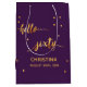 Elegant and modern for a 60th birthday party. Girly and feminine dark purple backdrop and faux gold text written with a trendy hand-lettered style script: hello sixty. With golden dots as decor. Templates for name and date, golden letters.