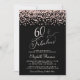 60th Birthday Party Rose Gold Glitter Black Invitation