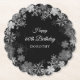 Elegant Winter Wonderland 60th birthday paper coaster features pretty script calligraphy surrounded by a lush snowflake wreath. The snowflakes pop against the dark black background. You can actually change the background colour to any colour. All of the text can be edited. This item is part of the Winter Wonderland Snowflake collection. It contains the DIY templates you need to create a unique invitation suite and matching party decorations. The invites are available in both paper and digital downloads.