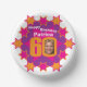 Celebrate a 60th Birthday with this fun pink yellow and purple girls star patterned sixtieth birthday photo and name paper bowl. Great idea for adding some fun to a 60th birthday party. Reads Happy Birthday Patricia 60, customise with your own birthday girls photo and choice of name. Ideal for placing your birthday treat in. Other matching items are available. Design by Sarah Trett for www.mylittleeden.com