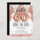 hello 60 birthday party save the date pink glitter balloons. Save the date rose gold number balloons with faux pink glitter. Girly, elegant, trendy. Easy to adjust template.