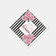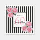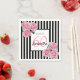 A napkin for a 60th birthday party. Classic slim black and white vertical stripes as background. With girly and feminine pink roses as decoration.