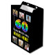 This eye-catching and cheerful birthday-themed gift bag design features a large number “60“ having a multicolored rainbow spectrum inspired gradient pattern, along with the message “Happy 60th Birthday,“ and a customisable recipient name. Above and below the message are some photos that can be personalised, perhaps with photos of the recipient, the recipient’s family and friends, and/or the sender(s) of the gift. A gift bag like this might be used when wrapping gifts or presents being given to somebody in celebration of their sixtieth birthday. (Photography © Storytree Studios, Stanford, CA.) [~Z0000669]