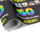 This cheerful and joyful birthday wrapping paper design features a large number “60“ having a multicolor rainbow spectrum inspired gradient pattern, along with the message “Happy 60th Birthday,“ and a custom recipient name. There are also some photos that can be personalised, perhaps with photos of the recipient, the recipient’s family and friends, and/or the sender(s) of the gift. Joyful birthday themed wrapping paper like this might be a fun way to wrap a gift or present being given to somebody who is celebrating their sixtieth birthday. (Photography © Storytree Studios, Stanford, CA.) [~Z0000670]
