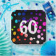 Neon rainbow dot pattern on black background for 60th birthday party.