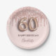60th birthday rose gold glitter pink balloon style paper plate