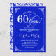 Elegant vintage royal blue and white design with damask pattern. Features script font. Cheers to 60 years! Can be personalized into any age! Message me if you need further customization.