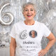 For a white, light coloured t-shirt. Black text. Personalise and add a photo, name, age, date. A faux silver looking 6-number.