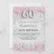 A modern, stylish and glamourous invitation for a 60th birthday party. A faux silver looking background, decorated with pink and faux silver glitter dust. Personalise and add your name nad party details. Number 60 is written with a balloon style font, script.