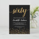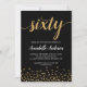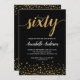 60th Birthday Stylish Black Gold Confetti Script Invitation