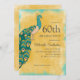 60th Birthday Teal Yellow Watercolor Peacock Invitation