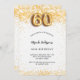 For an elegant 60th birthday party. A chic white background. Decorated with golden confetti. Personalise and add a name and party details. The name is written with a hand lettered style script. Number 60 with balloon style font.