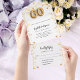 A white background, decorated with faux gold stars on the inside. Personalise and add a name, party details, RSVP date, return address and name.
