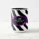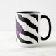 A classy zebra fur print accents this mug, a purple oval with star accents. Change styles as desired.