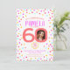 Bright colourful confetti random dots birthday 60th surprise party invitations. In bright living coral, hot pink, golden yellow and aqua blue green. Add your own birthday girl's photo in the centre of the 0 in 60 and customise with your own sixtieth birthday date, time and party details. Other matching items and milestone birthday years available. Original design by www.mylittleeden.com on zazzle.