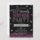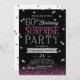 This chic and stylish 60th Birthday Surprise Party invitation features an elegant faux silver and pink glitter confetti theme with modern typography.